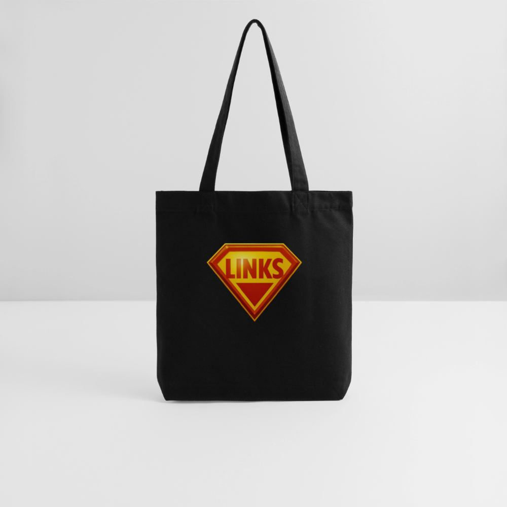 Superhelden-Stofftasche LINKS – Schwarz, beidseitig bedruckt