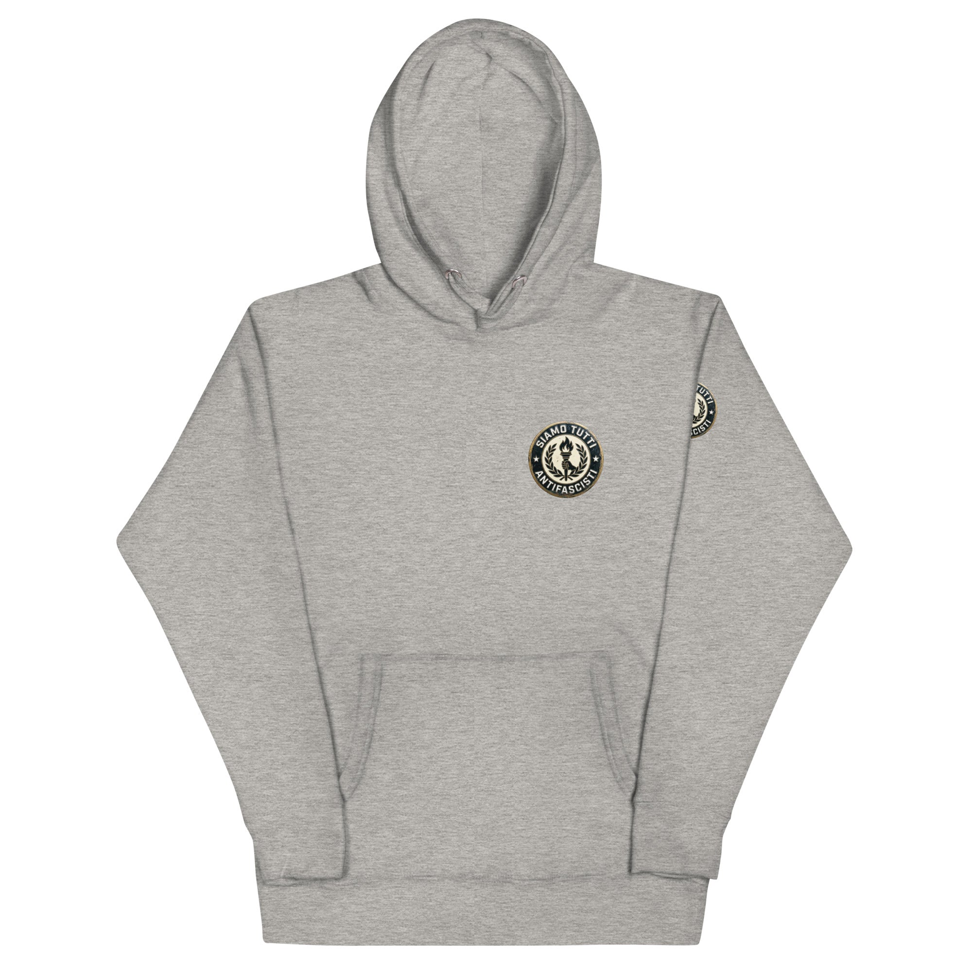 Antifaschismus Unisex-Hoodie – „Siamo Tutti Antifascisti“ Emblem mit Fackel & Lorbeerkranz – Unisex Statement T‑Shirt