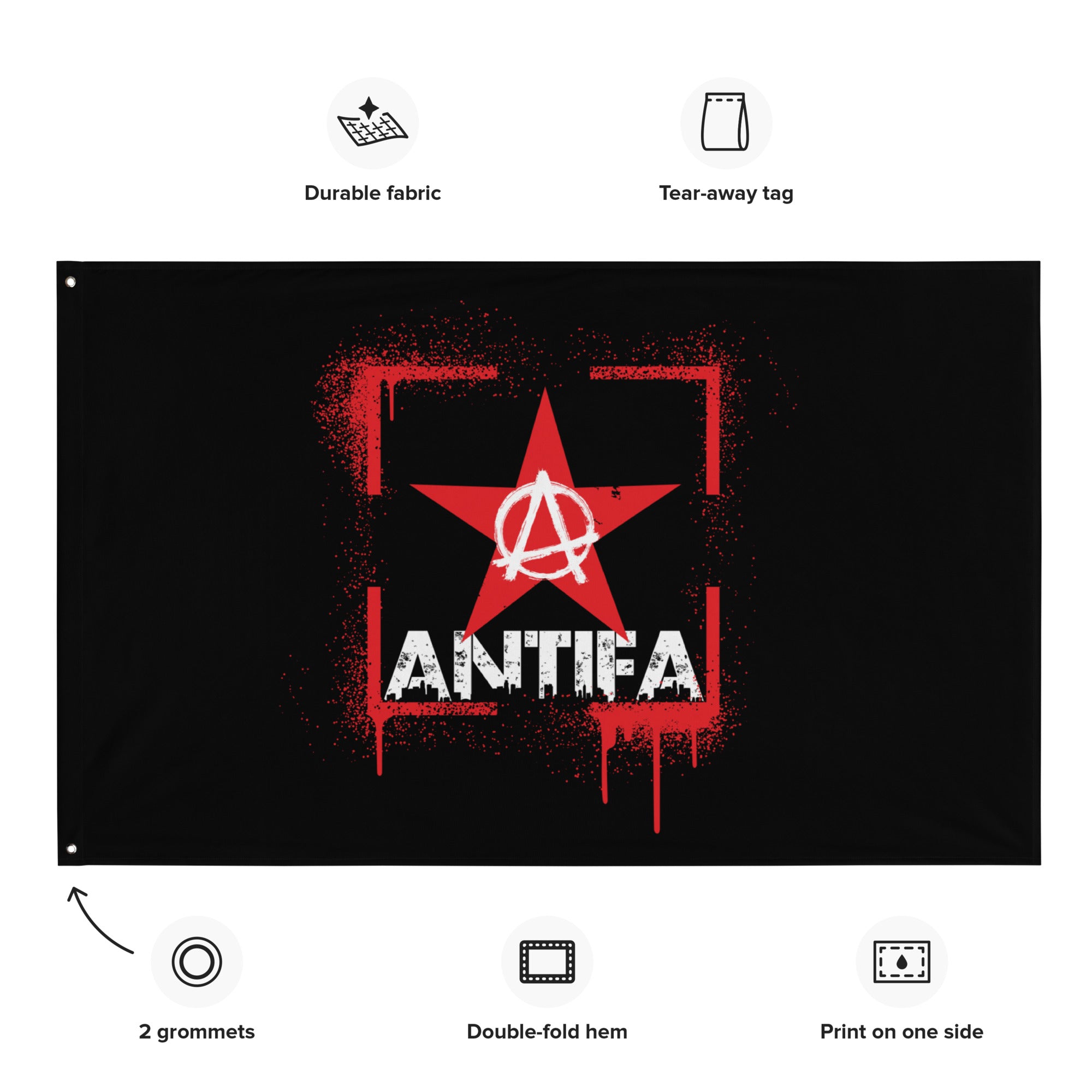 ANTIFA Statement-Flagge – Roter Stern & Anarcho-Symbol im Spraypaint-Stil